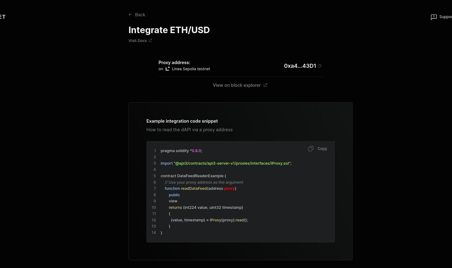 // Use the IProxy interface to read a dAPI via its proxy contract .